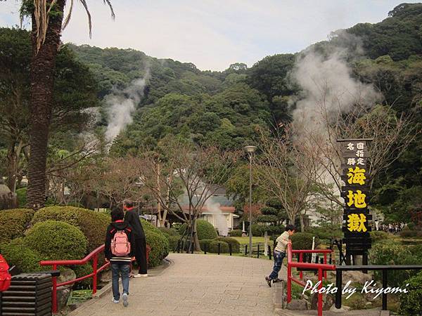 穿過售票亭後,大大的國指定名勝海地獄立牌就在眼前,目前別府地獄除了海地獄外,