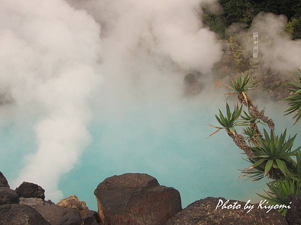 泉水的顏色像海水一樣,所以被命名為海地獄,因為泉質含大量的硫酸鐵,才會呈現這麼青藍的色澤,大家都第一次看到這麼藍的溫泉水,真的會一度懷疑這是真的嗎?