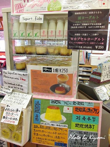 常去日本玩的人應該都知道,日本很會搞「限定」這套,所以在海地獄當然也有限定名物~海地獄烤布丁,是利用溫泉的蒸氣手工製作的布丁唷~因為需冷藏,最好買了就立即享用。