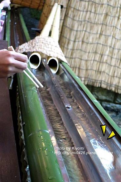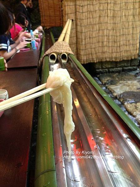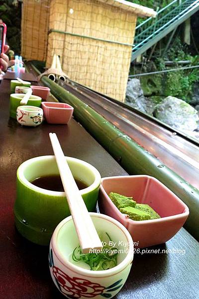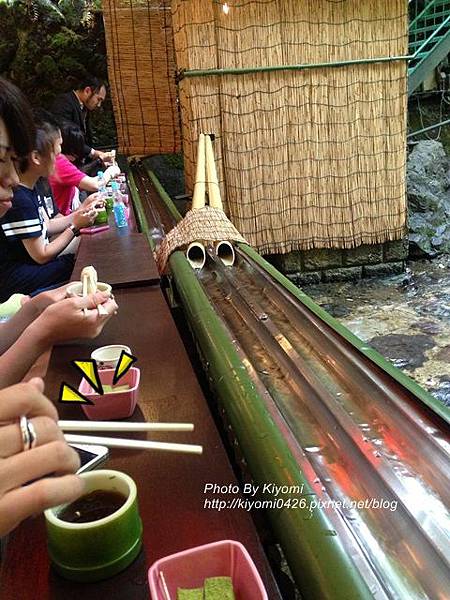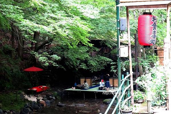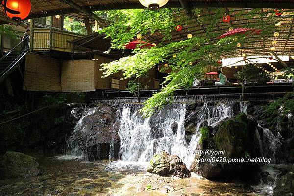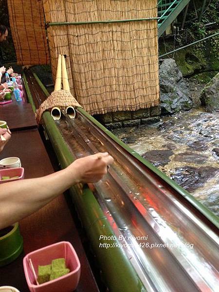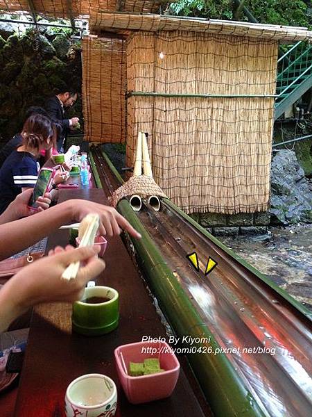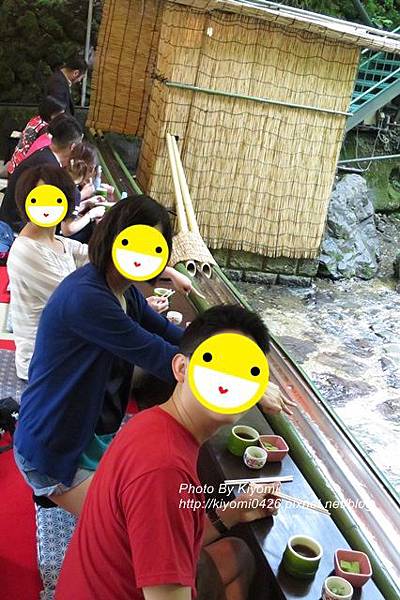 我們所在的區域是專門給體驗流水細麵的活動地,照片上方的遊客應該就是在享用正統的川床料理。
