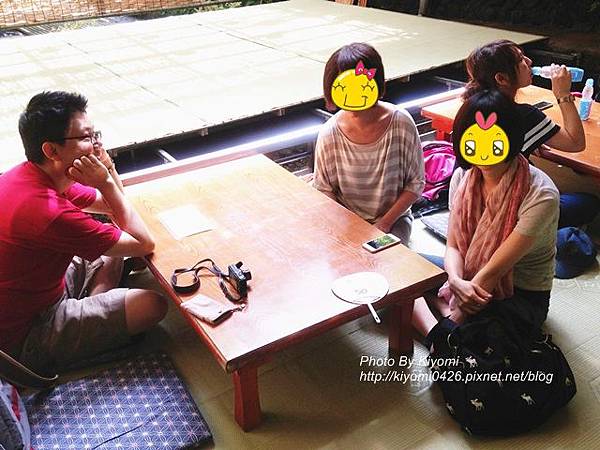 因為前一批還沒結束,大家先坐在納涼席上等待,這是本人第一次的川床體驗,值得記念!